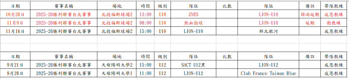 賽事公告